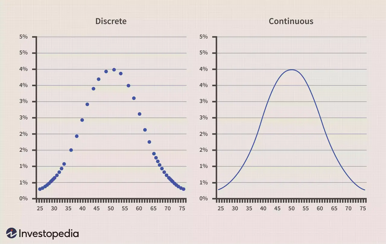 - 한 점에서의 확률은 0, 구간에서의 확률값 → 확률률밀도함수