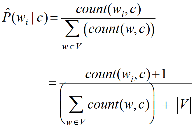 확률의 총합이 1이 넘기 때문에 V(Vocabulary)의 총합을 분모에 둠