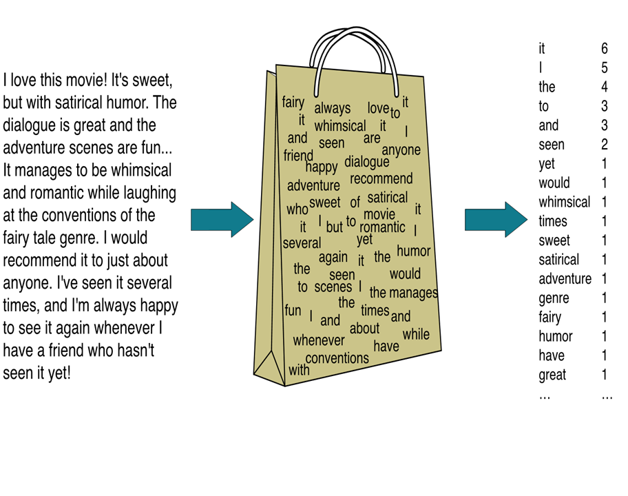 –Bag of words (단어의 위치보다는 몇 번 나왔는가?, 하위 개념 : set(집합))
