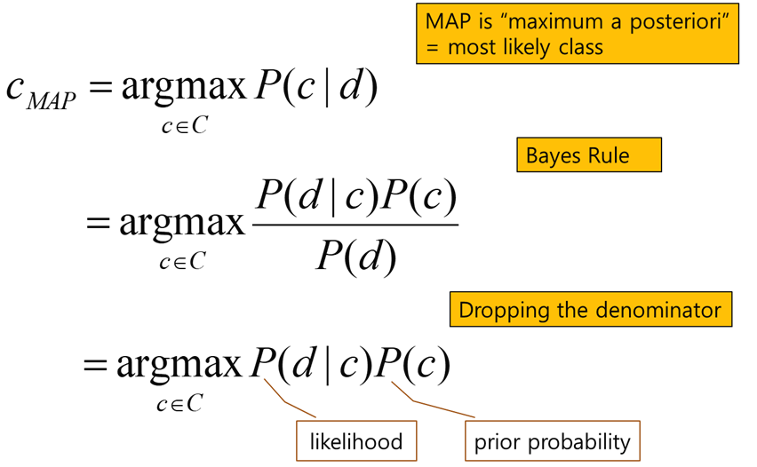 Bayes’ Rule Applied to Documents and Classes