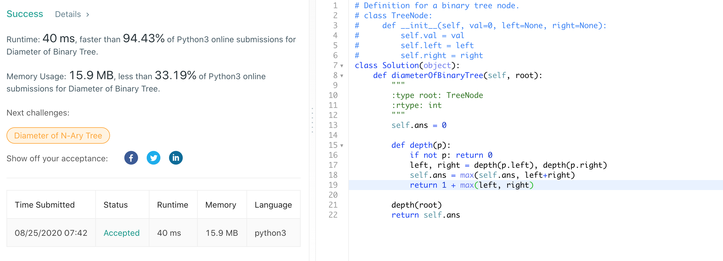 솔루션 출처: https://leetcode.com/problems/diameter-of-binary-tree/discuss/101145/Simple-Python