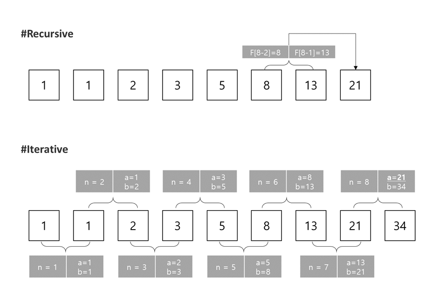 #Recursive vs Iterative 예제 - 피보나치(Fibonacci) 순열