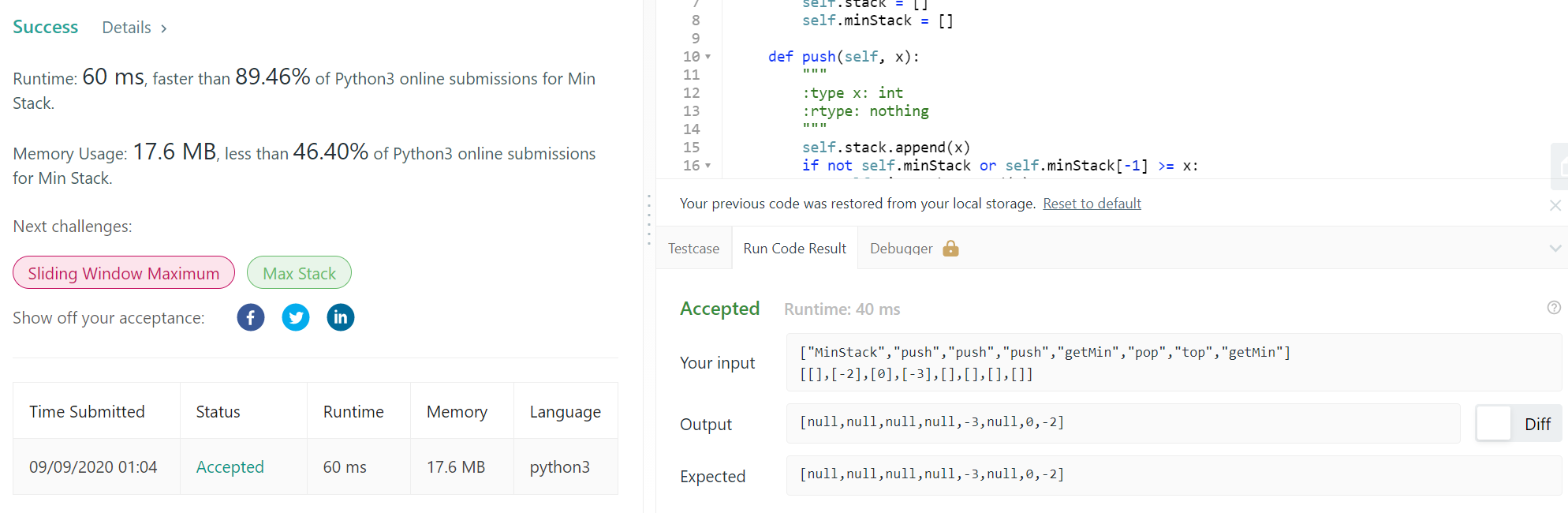 - Methods pop, top and getMin operations will always be called on non-empty stacks.