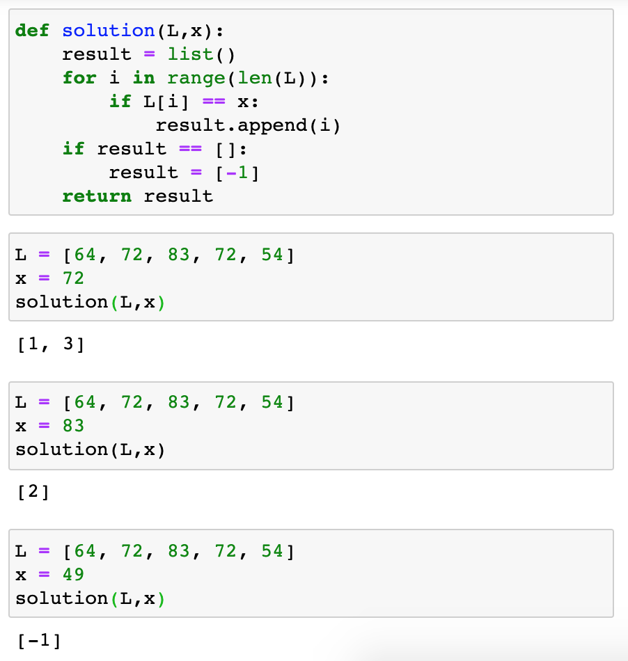 if L[i] == x: