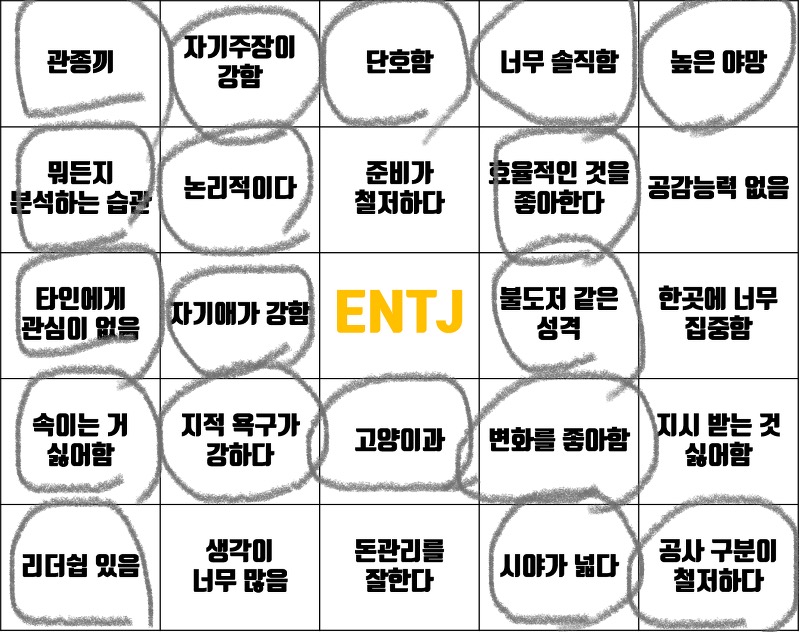 나를 요즘 유행하는 MBTI로 표현하자면 ENTJ이다.