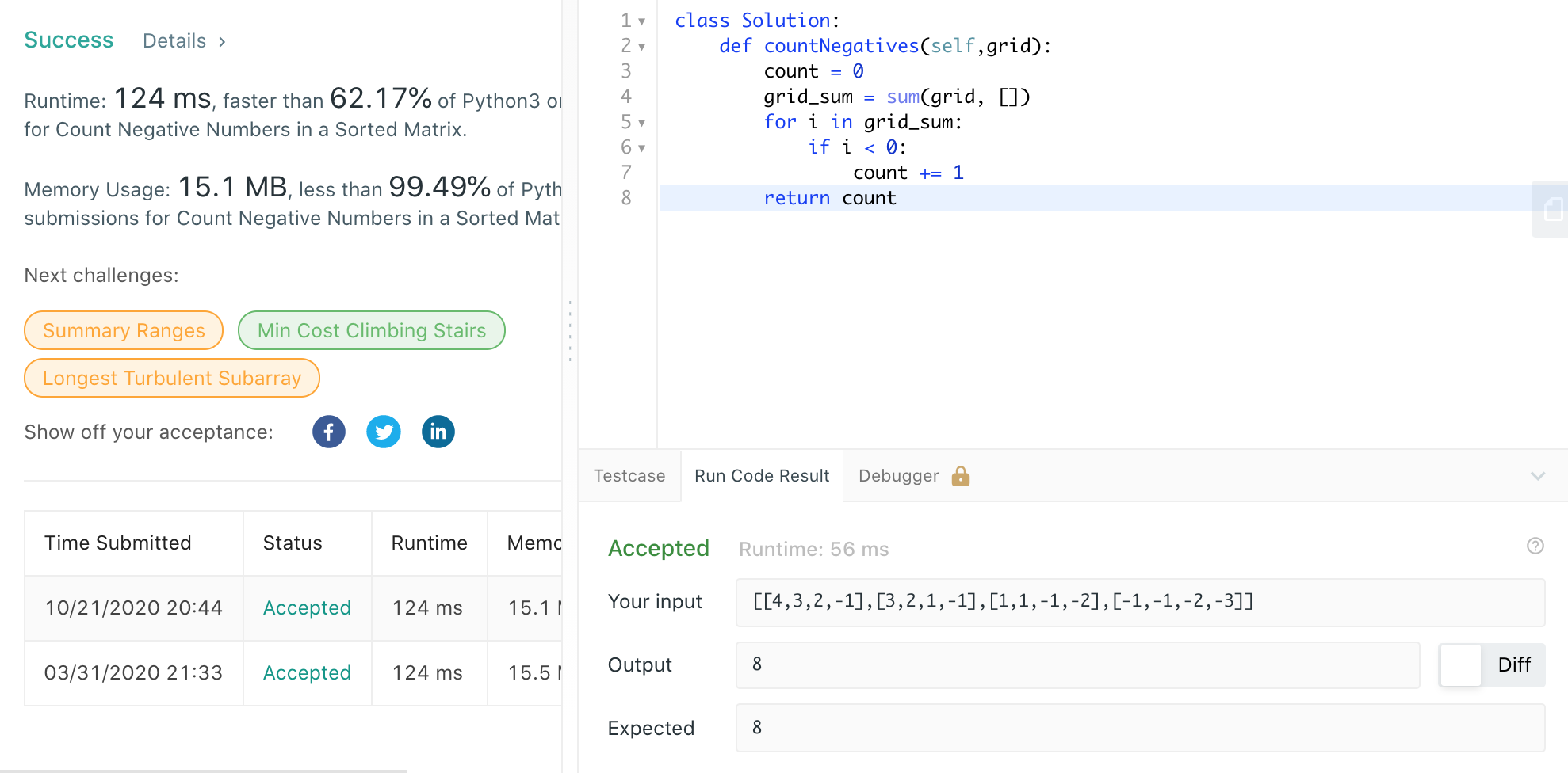 LeetCode 1351. Count Negative Numbers in a Sorted Matrix