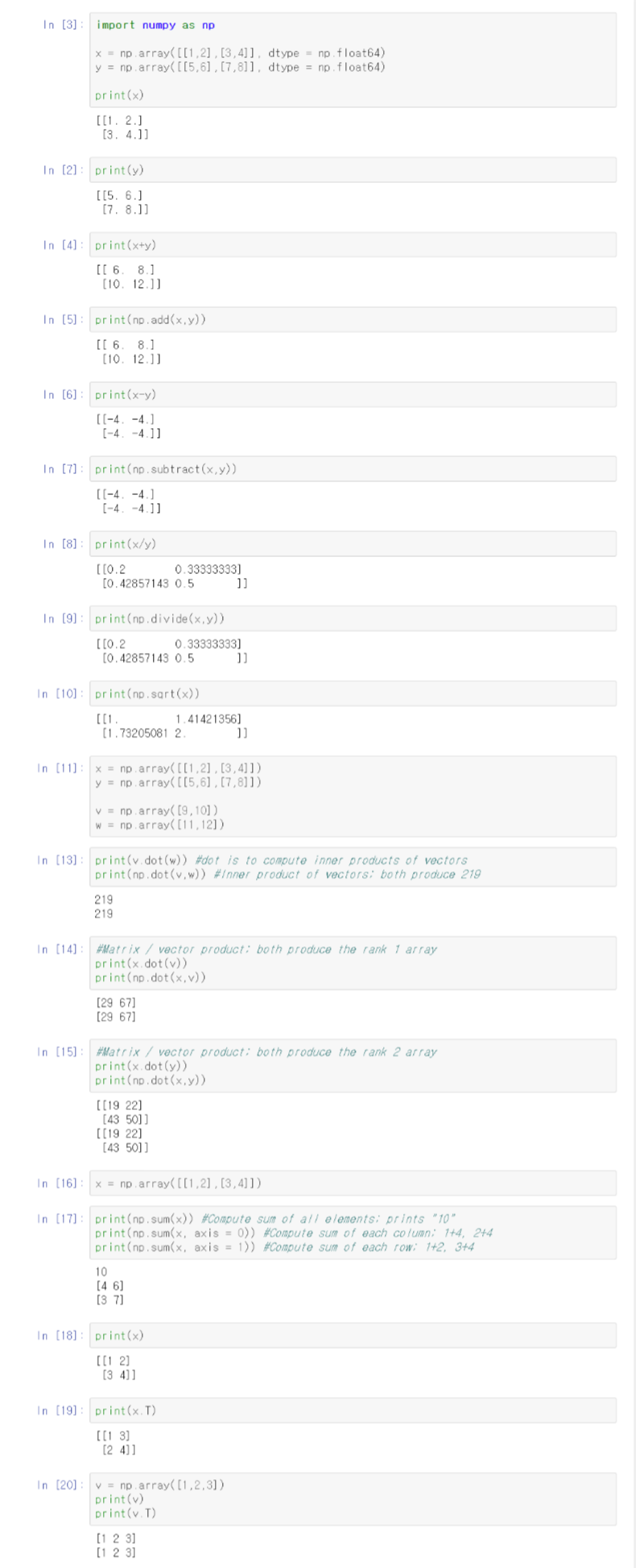 - NumPy는 Numerical Python의 줄임 말로써 고성능의 수치 계산을 하기 위해 만들어진 python package