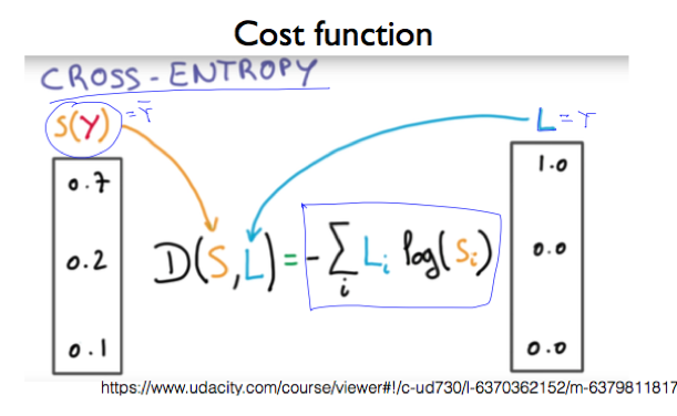 위 그림에서 L은 정답 데이터이며, S(Y)는 실험 데이터일 것입니다. Cross-entropy를 통해 Cost가 최소가 되는 S의 값과 Y의 값을 찾아냅니다.