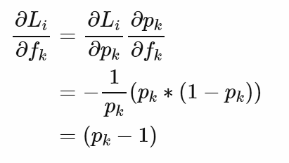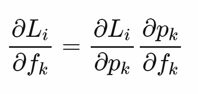 그리고 backpropagation을 perform하기 위해서 network의 output에 대한 loss의 변화량을 계산해야 합니다. L은 pk에 dependent하고, p는 fk에 dependent하기때문에그리고 backpropagation을 perform하기 위해서 network의 output에 대한 loss의 변화량을 계산해야 합니다.