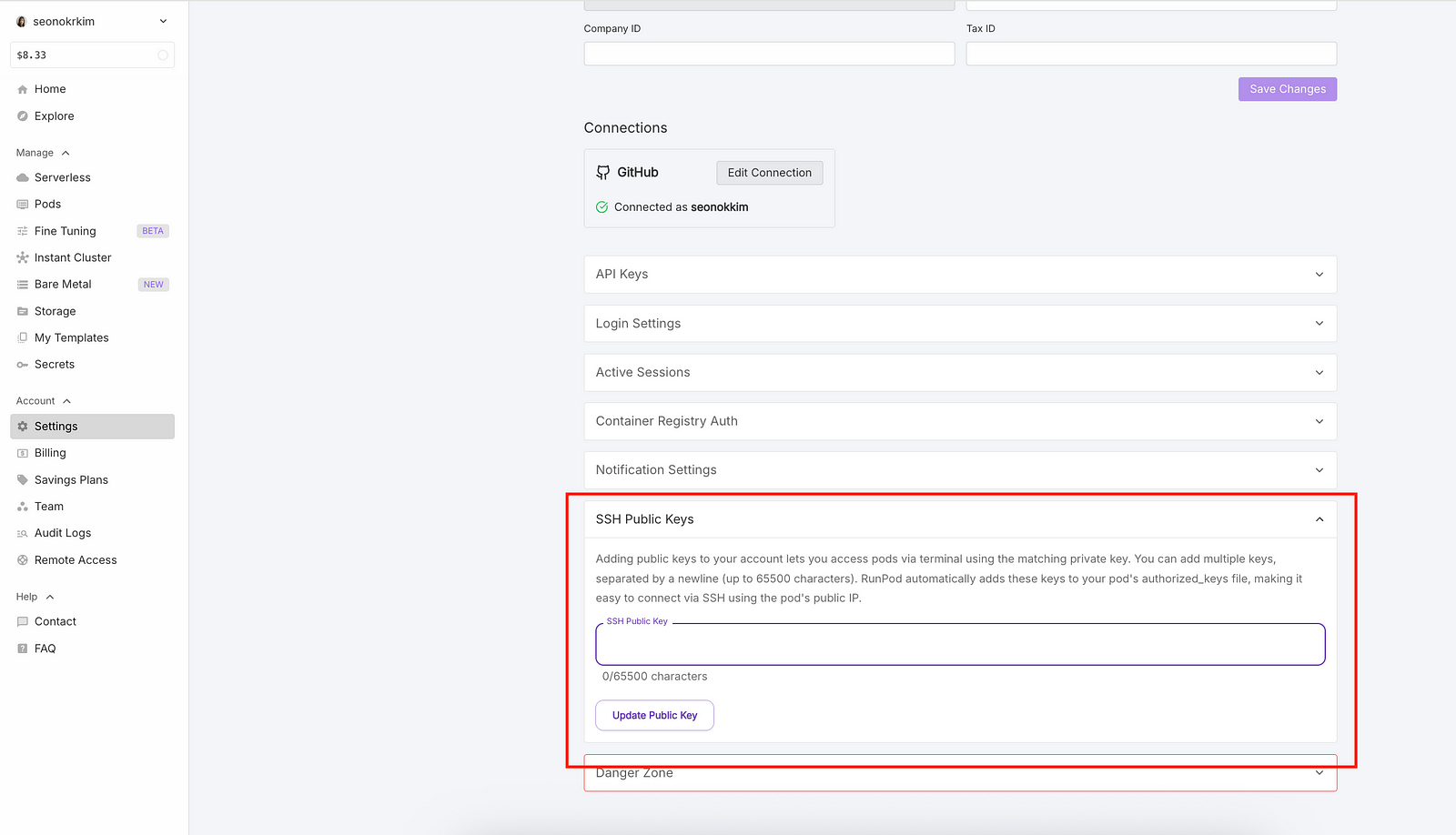 - Go to RunPod Dashboard → Settings → SSH Public Keys