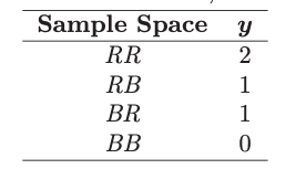 Two balls are drawn in succession without replacement from an urn containing 4 red balls and 3 black balls. The possible outcomes and the values y of the random variable Y , where Y is the number of red balls, are