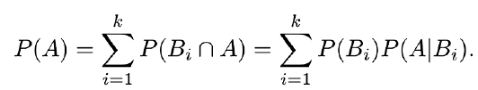 If events B1,B2, . . . ,Bk constitute a partition of the sample space S and P(Bi) 6= 0 for i = 1, 2, . . . , k, then for any event A in S: