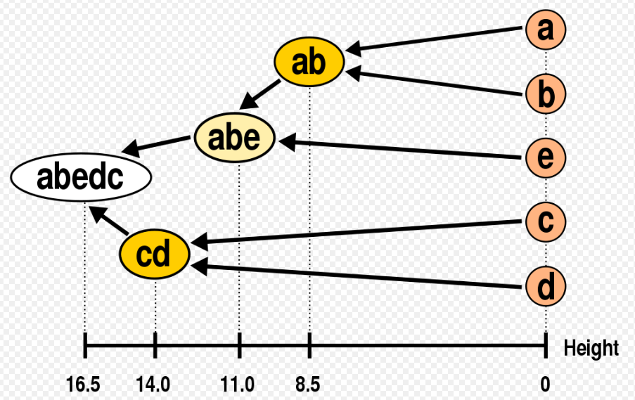 - 군집이 결합될 때, 새로운 군집의 평균은 가중평균을 통해 구해진다.