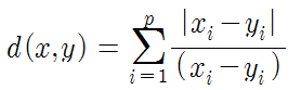 - 표준화 (Statistical) 거리: 해당 변수의 표준편차로 척도 변환 후 유클리디안 거리를 계산