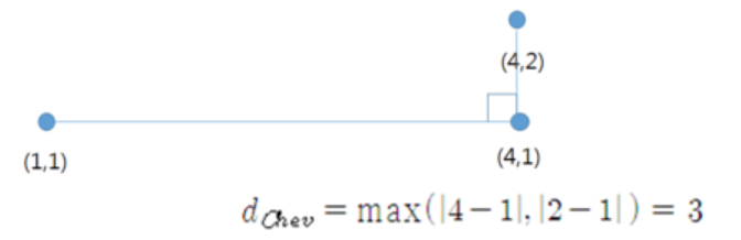 - 체비셰프 거리 (체스보드 거리, 최고 거리)
