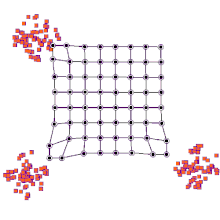 - 신경망 모형은 연속적인 층으로 구성된 반면, SOM은 2차원의 그리드로 구성