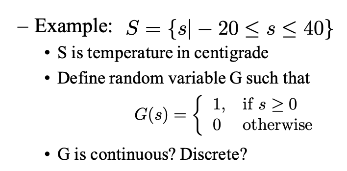 • Random variable X is said to be discrete RV if the range of X is discrete